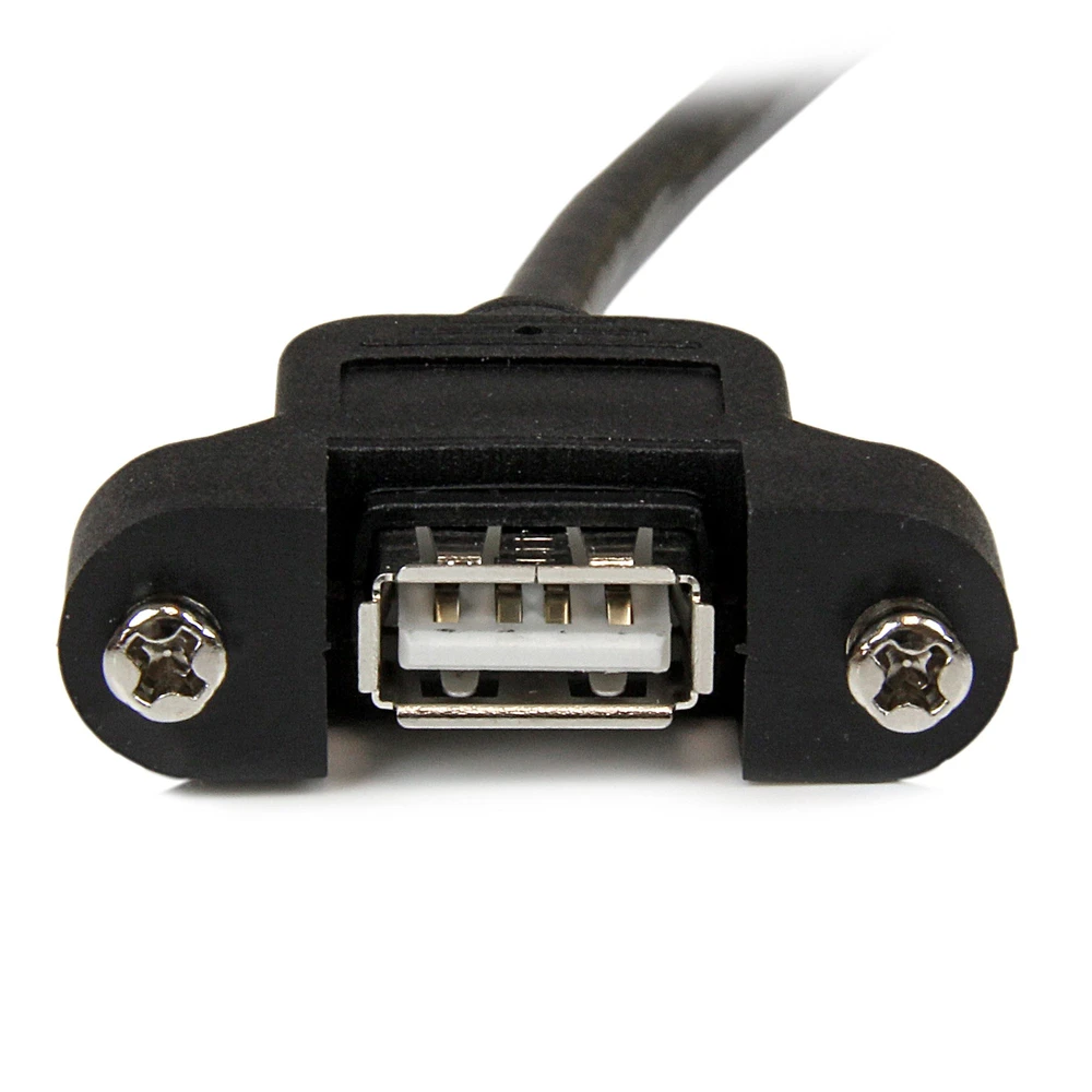 The StarTech.com 2-foot (60.96 cm) Panel Mount USB Cable with A-A Connector provides a secure and easily accessible USB-A port on your computer or front panel. It enables the customization of systems according to individual needs.