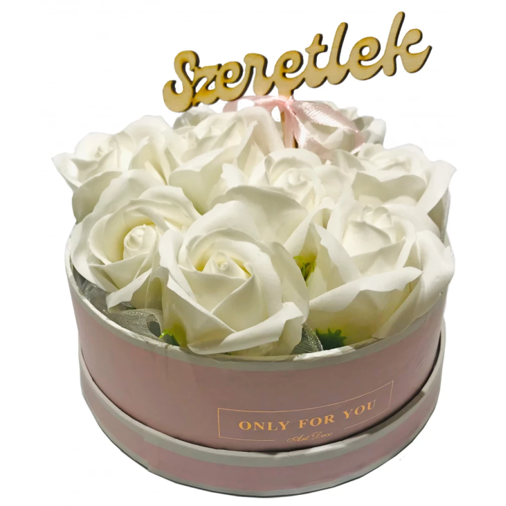 Szappanrózsa box pink rózsadoboz - white - L