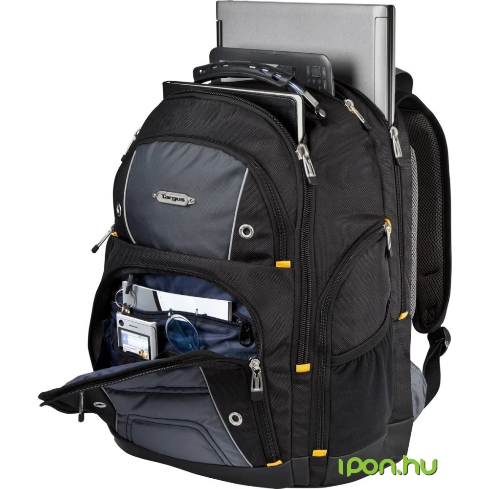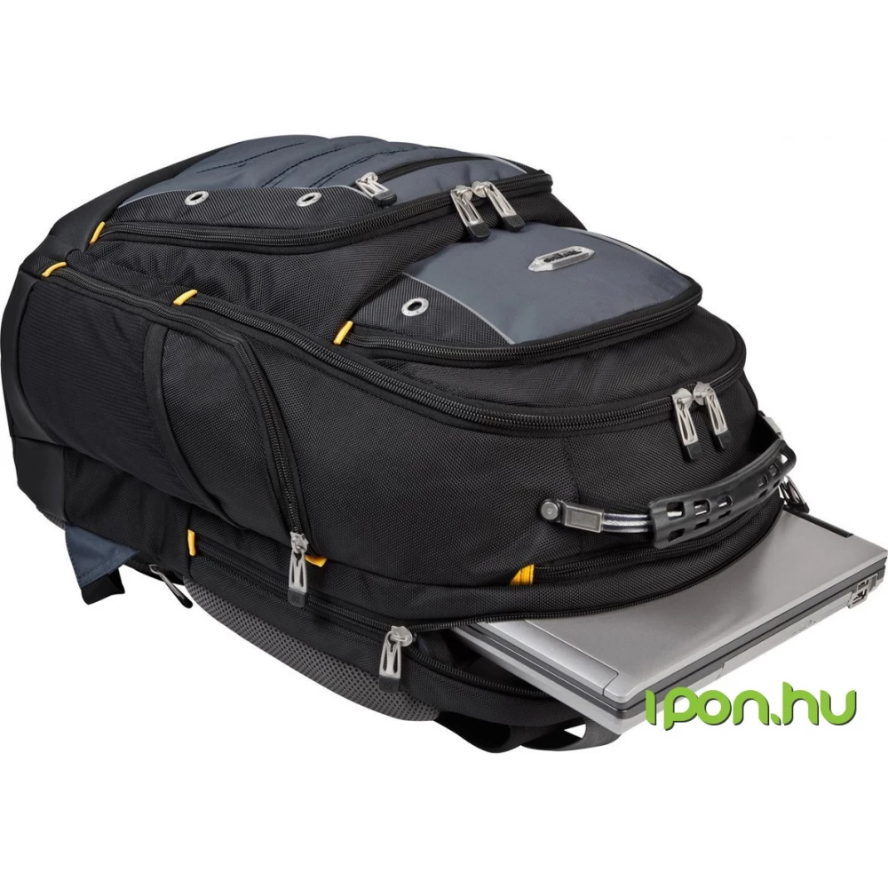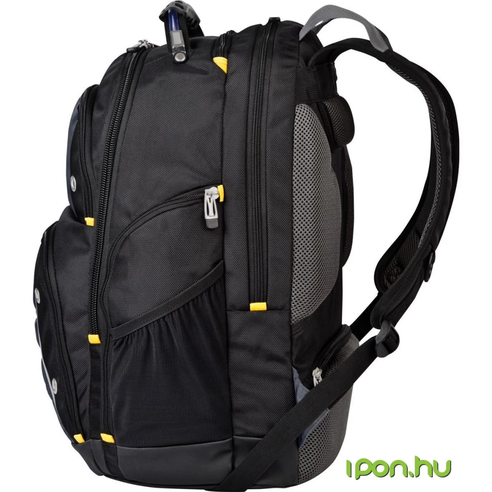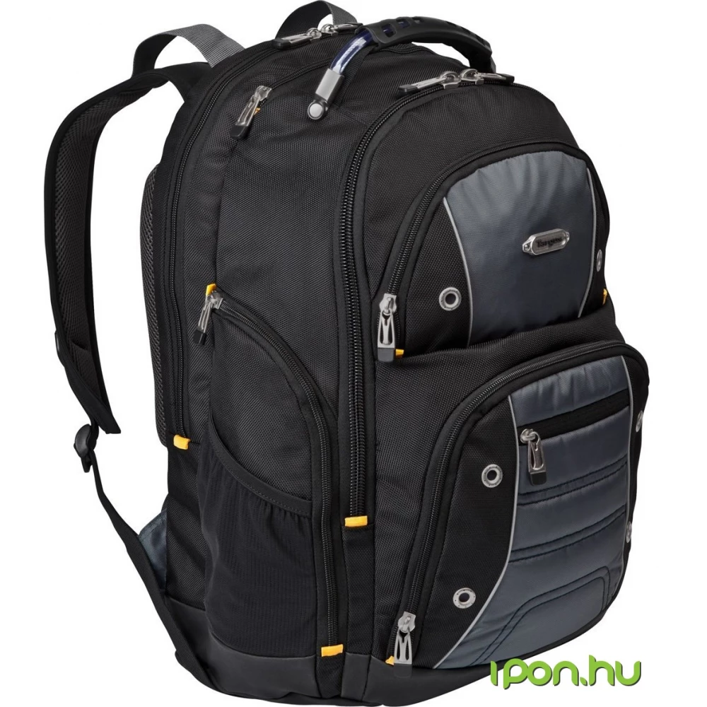 Fashionable black 15.6" backpack with gray insert, reinforced handle. Many storage compartments, including a pocket on the back where you can put more valuable things. Comfortable shoulder strap and padded back.