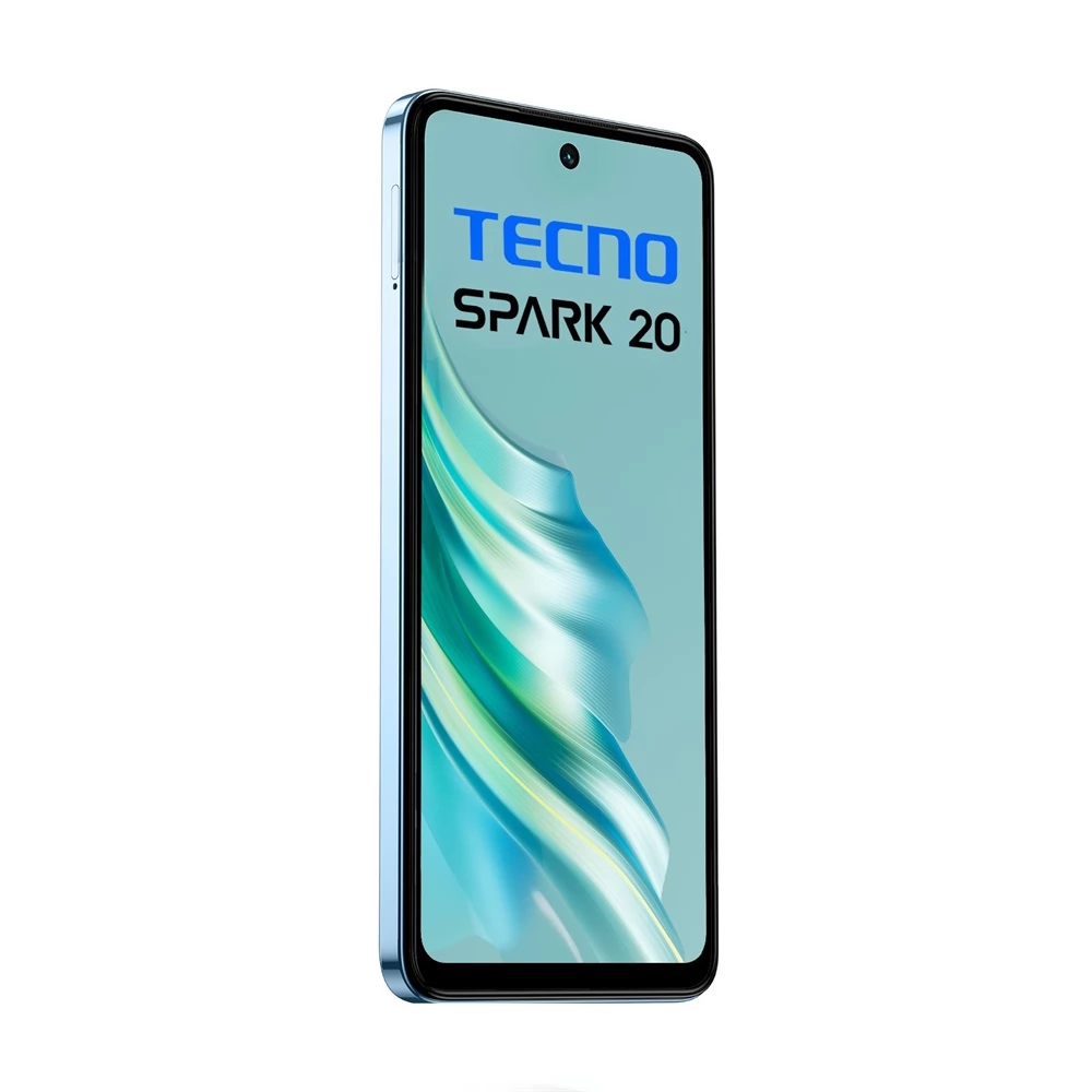 TECNO SPARK 20 is a modern smartphone with thin bezels, a large 6.56-inch screen, an improved 90 Hz refresh rate and a large memory of 256 GB. The 32 MP front camera has a dedicated flash, and the convenient Dynamic Port notifications are also displayed around the camera. The smartphone is powered by an octa-core Helio G85 processor, and features stereo speakers, a 50MP main camera, a massive 5000mAh battery, and a fingerprint scanner on the side of the device.