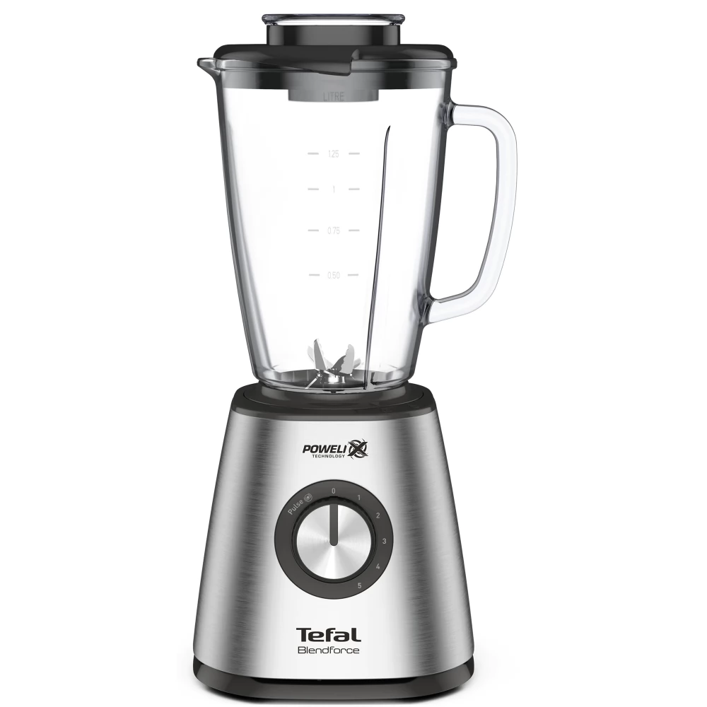 With the Tefal Blendforce 2 tabletop blender, you can fully control the blending process to achieve perfect results! This tabletop blender is equipped with 6 blades made with Powelix technology and has 3 combined functions, five speeds and the pulsing function, which ensures high performance, thanks to which the device is up to 30% faster!* The unique performance is also made of excellent stainless steel with an aesthetic appearance pairs, which is the decoration of every kitchen. The container made of high-capacity heat-resistant glass, resistant to heat shock, is ideal for preparing both hot and cold dishes. Blendforce 2 is the perfect blender for making smoothies and iced drinks, equipped with a function that makes it easier to crush ice! In addition, it is equipped with an air-cooling system, and stability and safe use are ensured by the suction discs located at the bottom of the device.