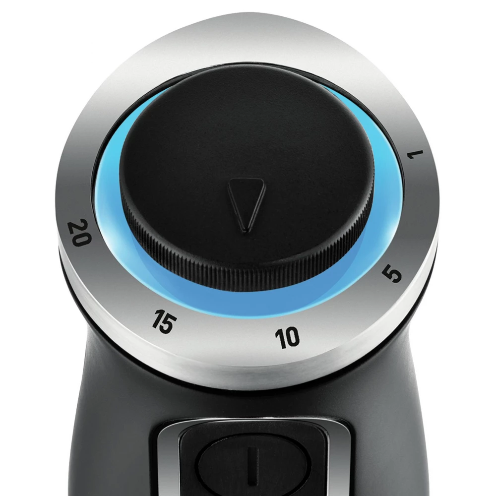 With the Quickchef stick blender from Tefal, you can enjoy optimal performance with minimal effort. Thanks to the high-performance 1000 W motor, it prepares a wide variety of dishes in seconds, without turning off the mixer, and with 20 speeds adjustable with an intuitive and easy-to-use selection button, you have complete control over the preparation. Splash protection and a grippy handle make it comfortable to use, and the individual parts are easy to wash in the dishwasher. All of this is complemented by an 800 ml measuring cup and a bard with a 500 ml cup for easy slicing of a wide variety of ingredients.