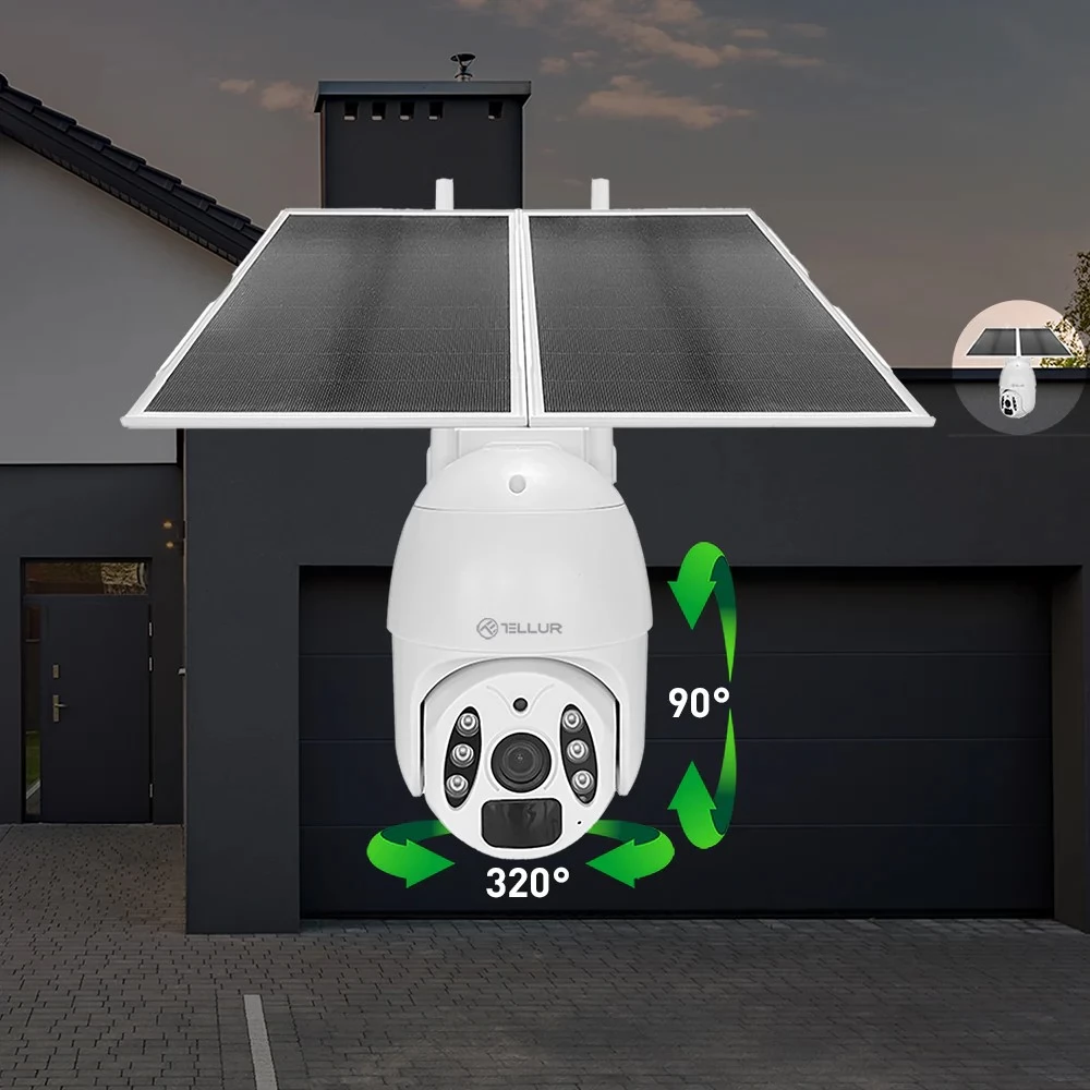 Experience the perfect home safety with the Tellur WiFi Smart Solar Camera. Ultra HD 2K resolution This autonomous camera takes clean and detailed images, while the high-efficient 20 W solar panel and the 19200 mAH battery provide uninterrupted power. With accurate and fast pir motion detection, you get real -time alarms, while the scanning and decision function covers a larger area of observation. Remote and control from anywhere through the Tellur Smart app and enjoy the smooth compatibility of Amazon Alexa and Google Home.