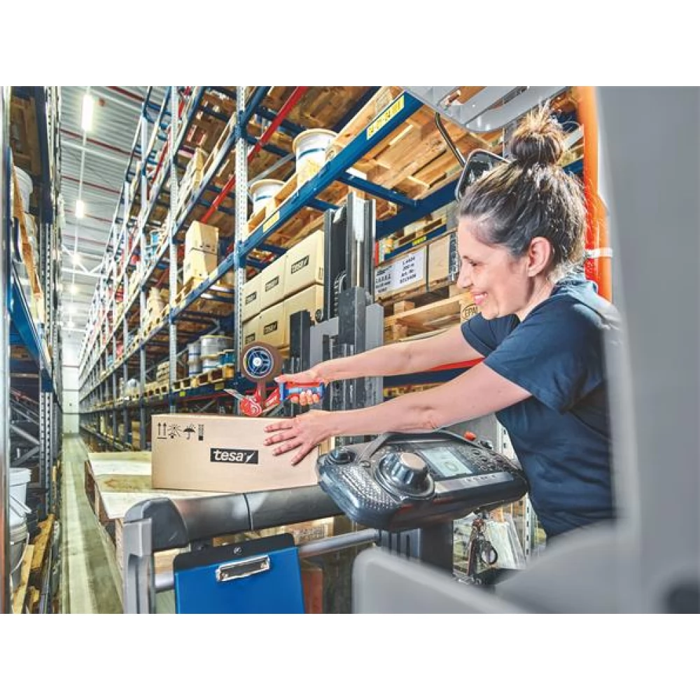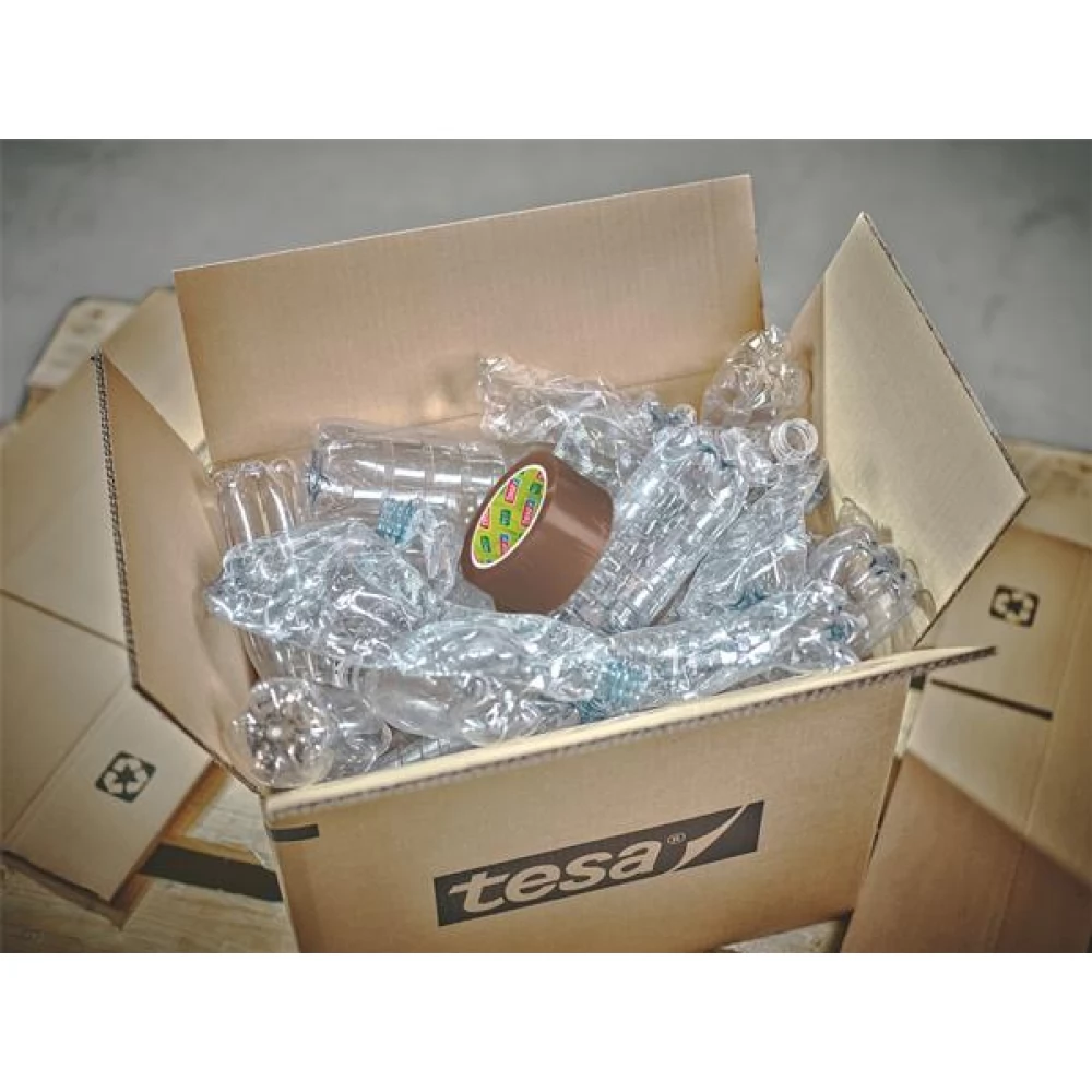 Adhesive tape made from 70% recycled PET bottles.