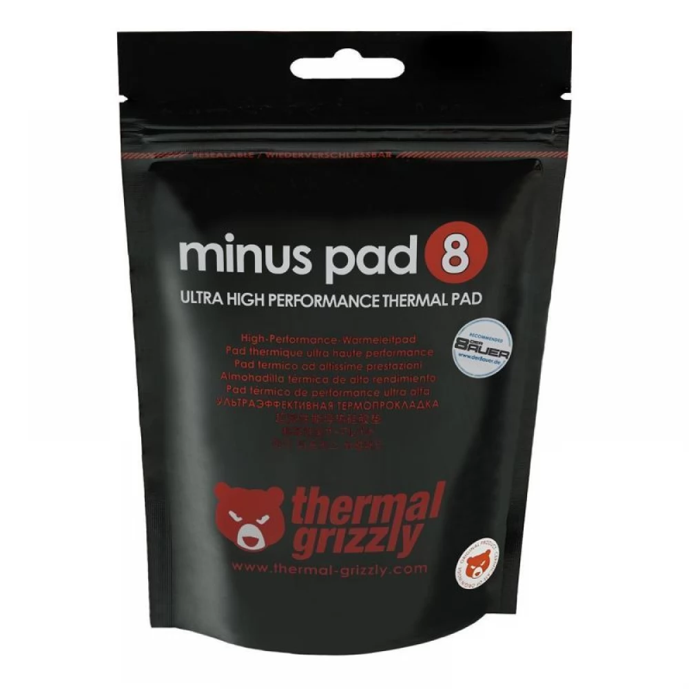 The high -performance heat conductivity paste paste of the Thermal Grizzly Minus Pad series has an extremely flexible and adaptable surface while providing excellent heat conductivity. Even the smallest component departments can be effectively compensated. Are available in different sizes and thicknesses.