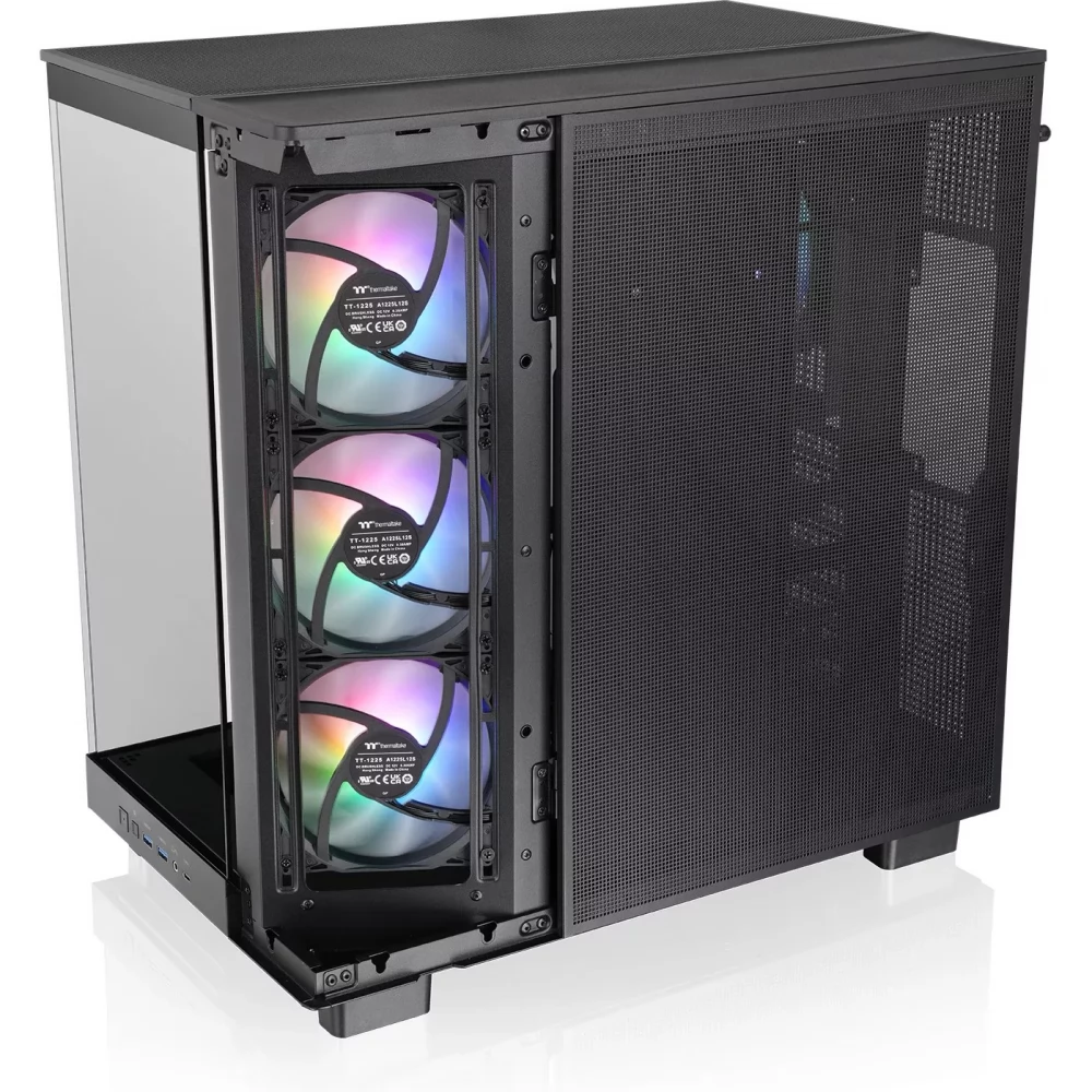 The VIEW 380 XL TG ARGB Tower House has three hydraulic-bearing 120mm ARGB Lite in reverse fans on the side of the motherboard and with a hydraulic bearing 120mm ARGB Lite fan at the back. Its impressive lighting effects can be controlled by the motherboard software of ASUS, Gigabyte, MSI and ASRock.