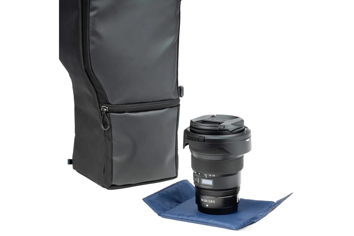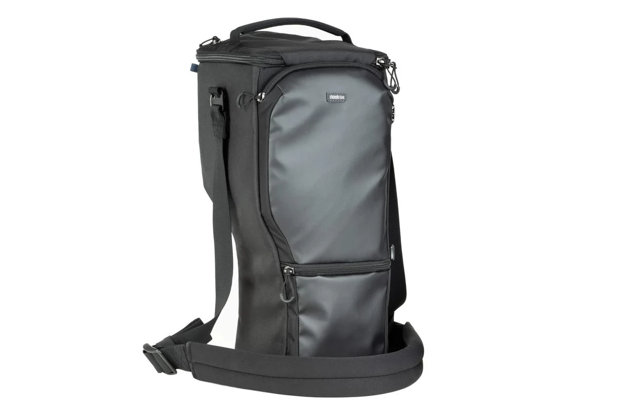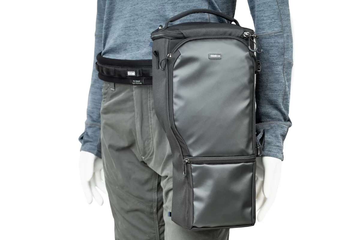 The pistol bag is designed to absorb a 150-600 mm or equivalent lens and the camera frame connected to it. Carry it with the attached shoulder strap or belt clamp!