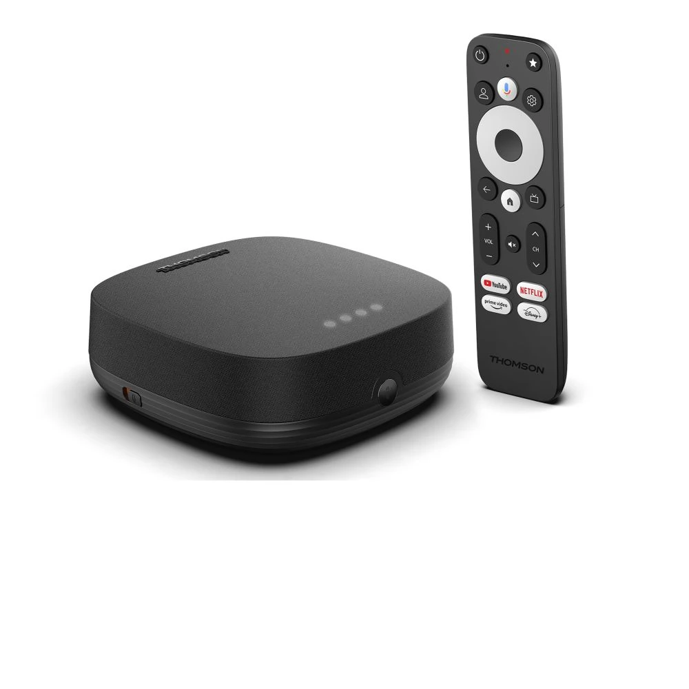 The Thomson Streaming Box Plus brings the cinema experience to the daytime at an affordable price. The stunning 4K Ultra HD resolution, Dolby Vision technology and Dolby Atmos surround sound ensure that every watch movie is a real cinema experience. The device operates with a strong Amlogic Cortex-A55 quad-core processor, 3GB of RAM and 32GB of storage, providing fast and smooth performance. With the Google TV system you can access hundreds of thousands of films, series, apps and live TV channels, and with the built-in Google Cast you can stream your smart devices to your TV screen.
