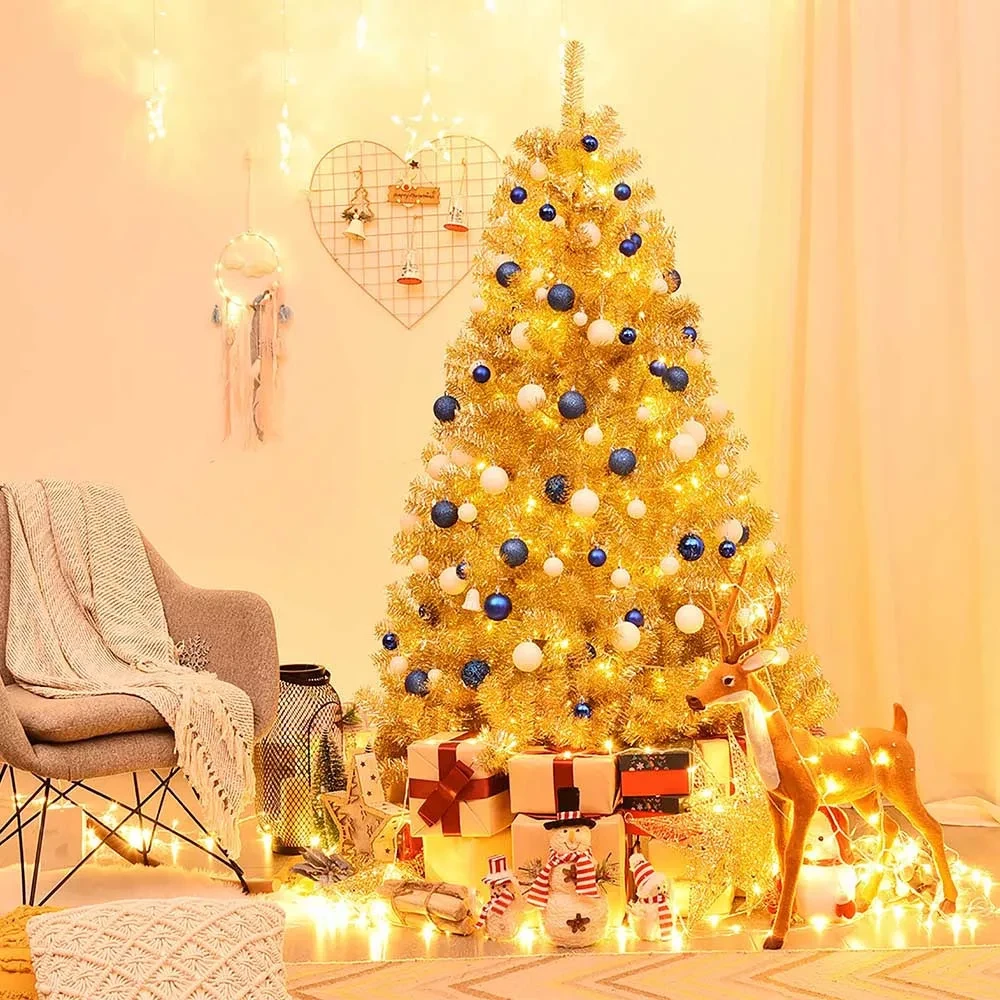 The golden artificial pine is available in several sizes, so you can find the ideal version for any apartment or room. Whether it's small rooms or a spacious living room, the golden Christmas tree becomes a brilliant central element in any environment.