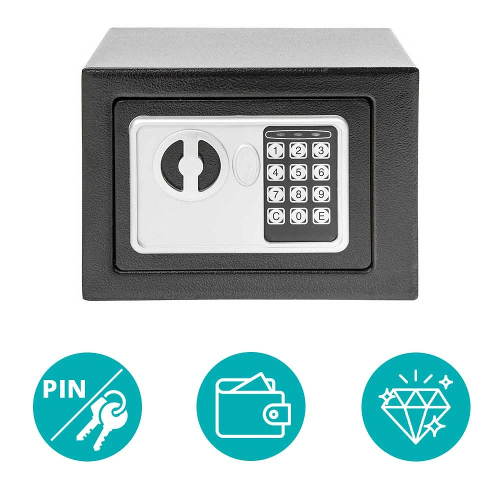 This digital safety box is an ideal choice for safe storage of small valuables, jewelry, documents or cash. Perfect for home, office and business use.
