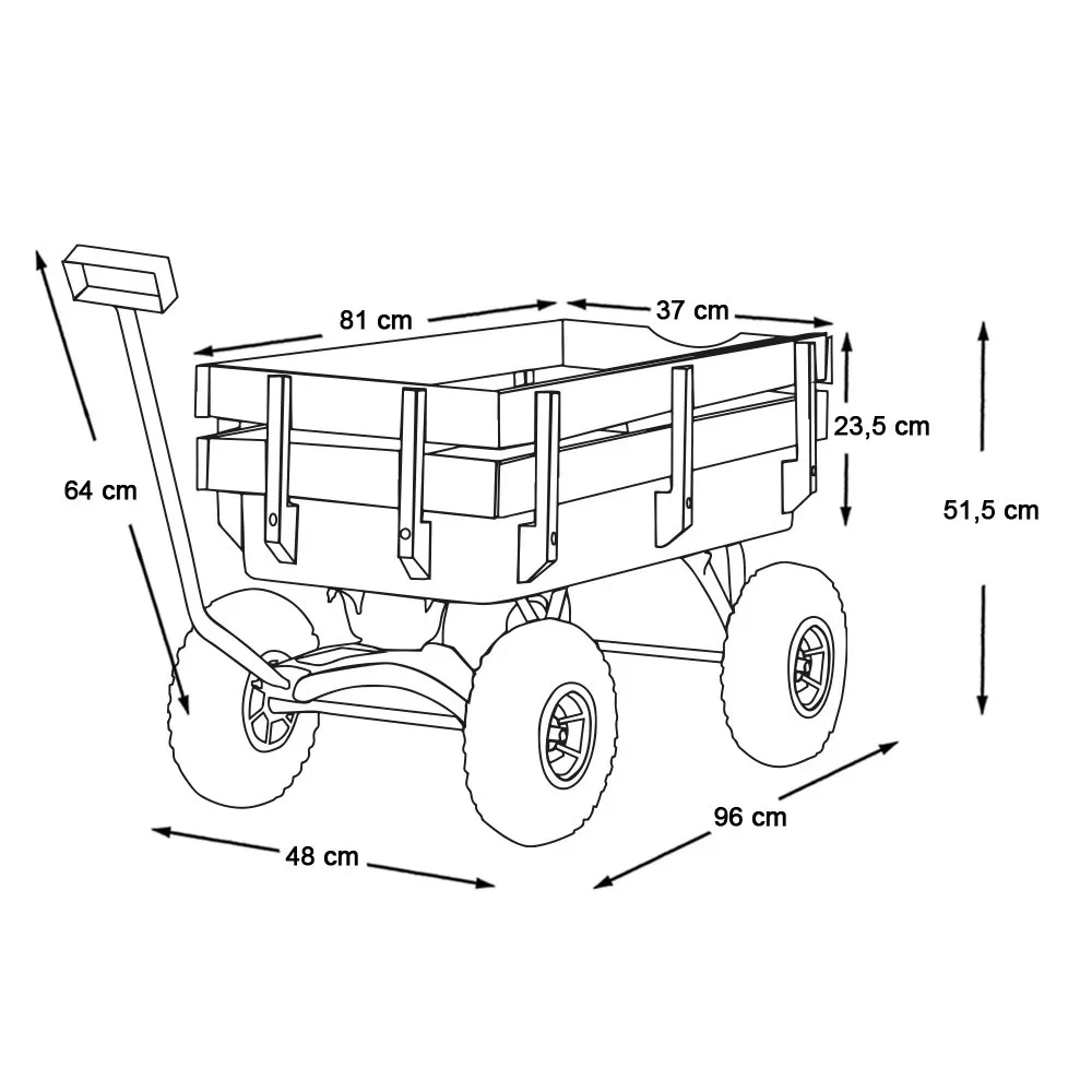 This towable handcart effectively helps you move heavy objects, be it plants, tools or garden waste. Its compact, yet strong structure is perfect for home, garden or even warehouse use.