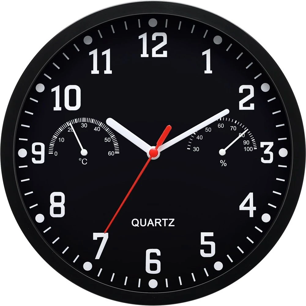 TOO CL-3145-B wall clock hő and humidity mérővel black