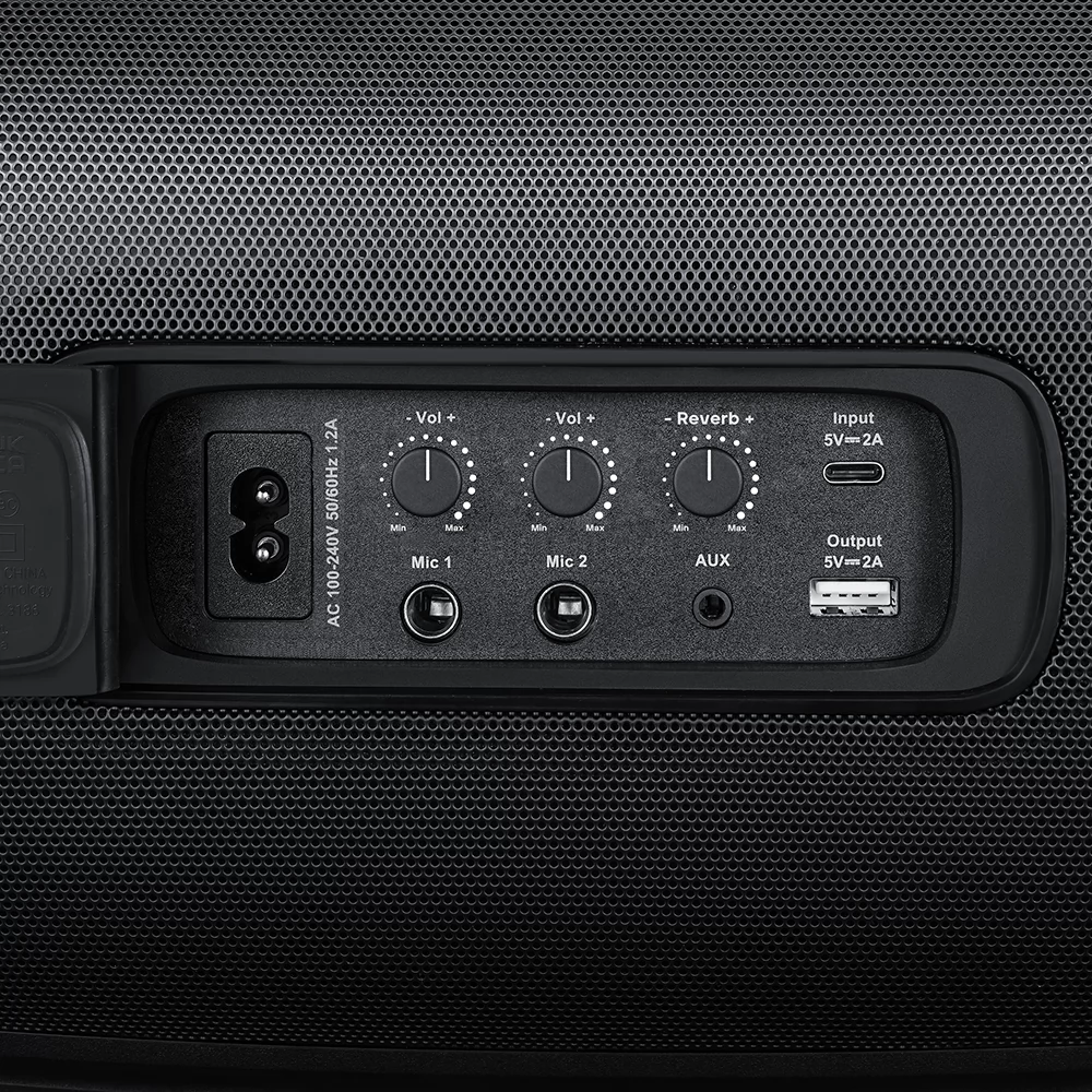 Another element that sets this speaker apart is the LED lighting effects. The lighting changes to the rhythm of the music, which creates a unique atmosphere at every event. You can also customize them with the dedicated app, adjusting the colors and styles according to your preferences or the nature of the event. It is not only a speaker, but also a striking decorative element that brightens up every moment.