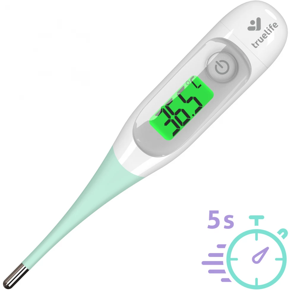 If you prefer the classics, you will love the TrueLife Care T3 contact thermometer. It complements the portfolio of TrueLife non-contact thermometers and proves that classics can also be modern. This reliable and highly accurate digital thermometer with a flexible tip measures the temperature in just 5 seconds. You can see the measured values immediately on the easy-to-read display, which changes the backlight according to the temperature. The thermometer can gently measure the temperature at three points on the body, so it is suitable for both babies and adults, and it also allows you to measure the water temperature. TrueLife Care T3 is free of mercury, glass and harmful substances, so you can pack it in your travel bag and take it with you anywhere. In addition, the element is suitable for up to 1000 measurements.