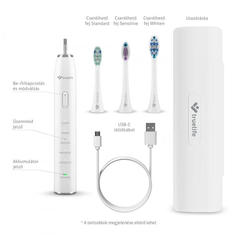 Regular dental care is the basis of daily hygiene rituals. Not only will it provide you with a beautiful smile, but visits to the dentist will no longer be a nightmare for you. Thanks to the combination of two TrueLife SonicBrush Clean30 sonic brushes Black & White, you can enjoy this comfort together with your partner. The brushes are equipped with SonicTrue® sonic technology, and the 70,000 movements per minute clean your teeth perfectly and gently. However, you can also use the gum massage mode. The brushes have 5 modes – Clean, Shine, Whiten, Massage and Sensitive. The duo pack contains 4 heads (2 Standard, Sensitive and Whiten), with which you can easily tell when it's time to change, thanks to the blue bristles, which turn white after a certain time. Each brush also comes with a travel bag, again in black and white. The battery of the brush lasts for 30 days, after which the included USB-C cables are used for recharging.