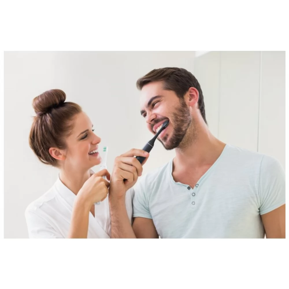Do you want healthy teeth and gums? Aren't you stressed from every visit to the dentist? You and your partner can trust the TrueLife SonicBrush Compact with modern sonic technology. In the Truelife SonicBrush Compact Duo set, you will find two Sonic brushes (in black and white), four toothbrush heads, two travel bags and two charging bases. Pamper yourself with exclusive dental care, thanks to which you will get a bright smile and give no chance to harmful bacteria. The brush head oscillates at a high frequency and removes as much plaque as possible with each movement. You can choose from 4 cleaning modes. The battery of the brush lasts up to 30 days.