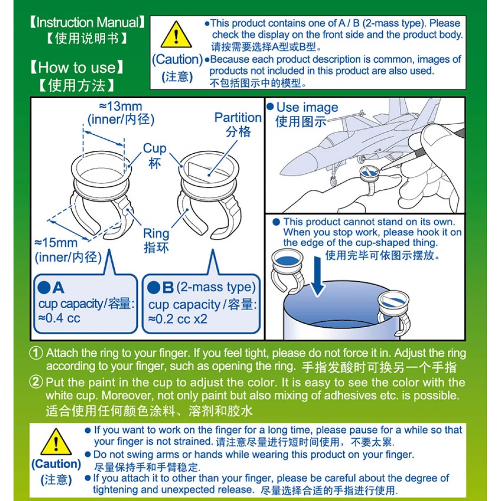 The practical, ring-shaped paint cup that can be put on your finger with a partition. The inner diameter of the cup is 13mm, the ring is 15mm.