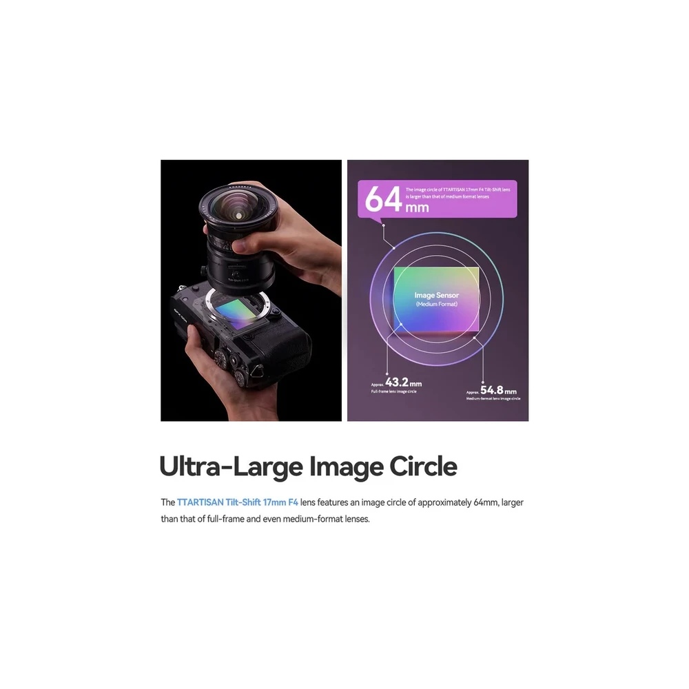 The TTArtisan 17mm f/4 is an ultra-wide tilt-shift lens for Sony E-mount cameras that offers advanced perspective and focus control, making it a real asset for architectural and interior photographers. Its robust manual controls and full-frame coverage allow you to create stunning and precise images.