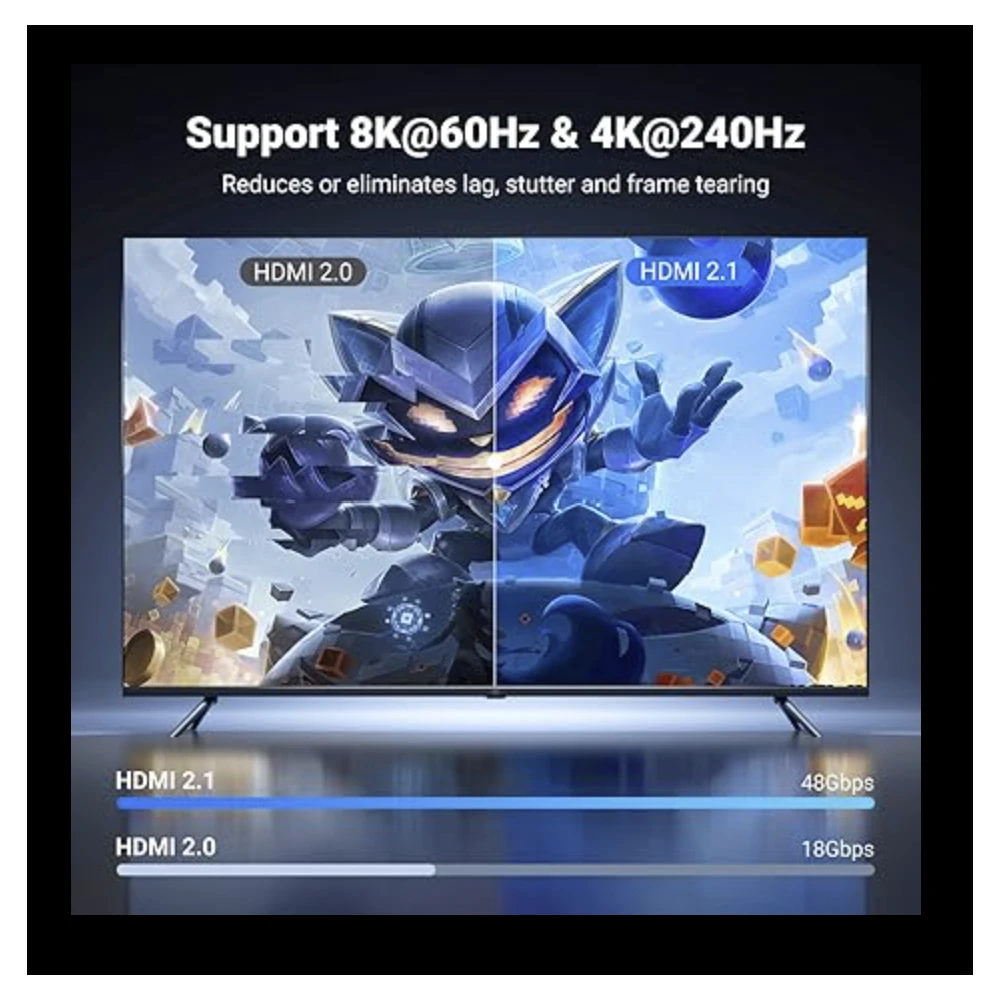 The UGREEN HDMI 2.1 - HDMI 2.1 connecting cable provides impeccable quality image and sound transmission. With a length of 1.5 meters, it perfectly meets any need, be it gaming, watching movies or working....