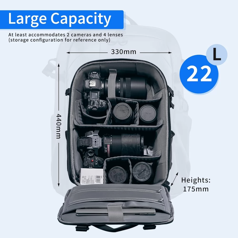 The Ulanzi 22L is a camera backpack that is ideal for travel and everyday tasks. You can also store your camera, accessories and clothing in a compact bag with collapsible partitions.