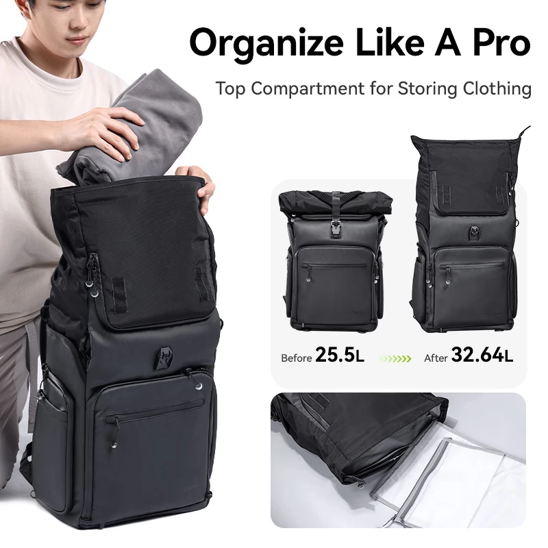 - Basic capacity: 25.5L that provides enough space for your photographer's equipment and personal items