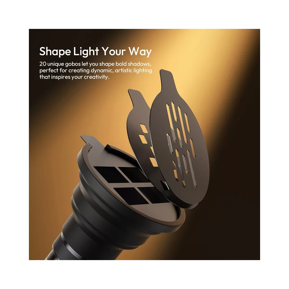 - 20 replaceable graphics (gobo): suitable for projecting different patterns, creating spectacular shadows and creative light effects.