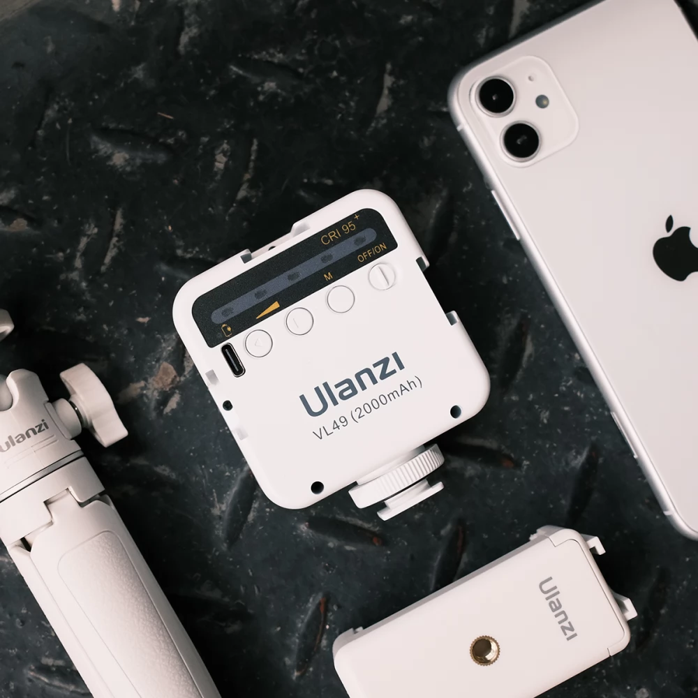 Complete the Ulanzi VL-49 rechargeable mini LED lamp to complement your tripod or camera. The VL-49 is a compact lamp designed for DSLRs, camcorders, smartphones or mirrorless cameras. Adjustable brightness and color temperature. It is powered by an integrated 2000 mAh lithium-ion battery and charges via the USB Type-C port and lasts for about ten hours at the lowest brightness and two hours at the highest.