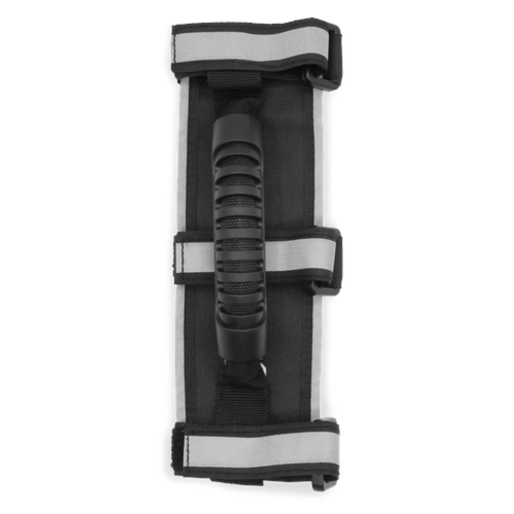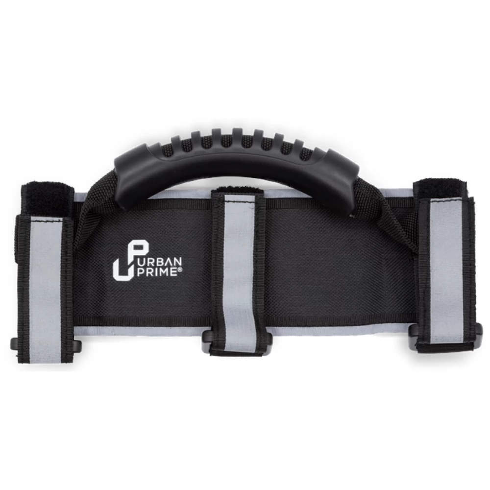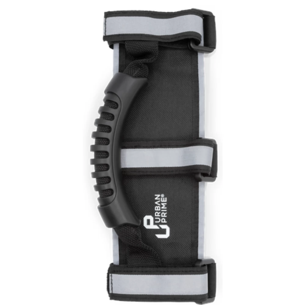 The handle of the Urban Prime is ideal for transporting an electric scooter, up to 50 kg, and can be quickly and easily installed thanks to the three Velcro straps. Side reflective strips provide better visibility even at night. The non-slip coating enables a firm and safe grip on the transported object.