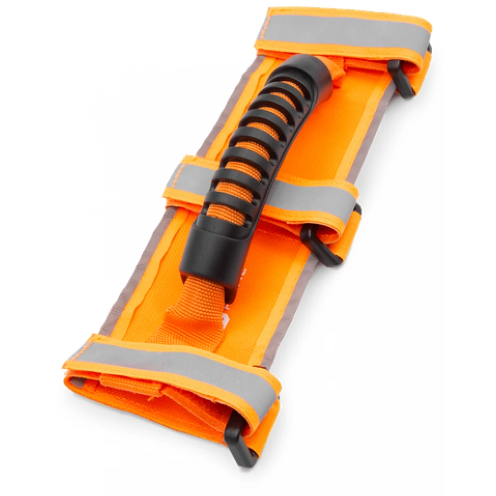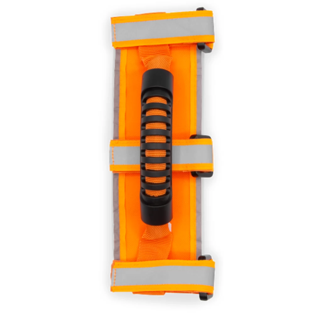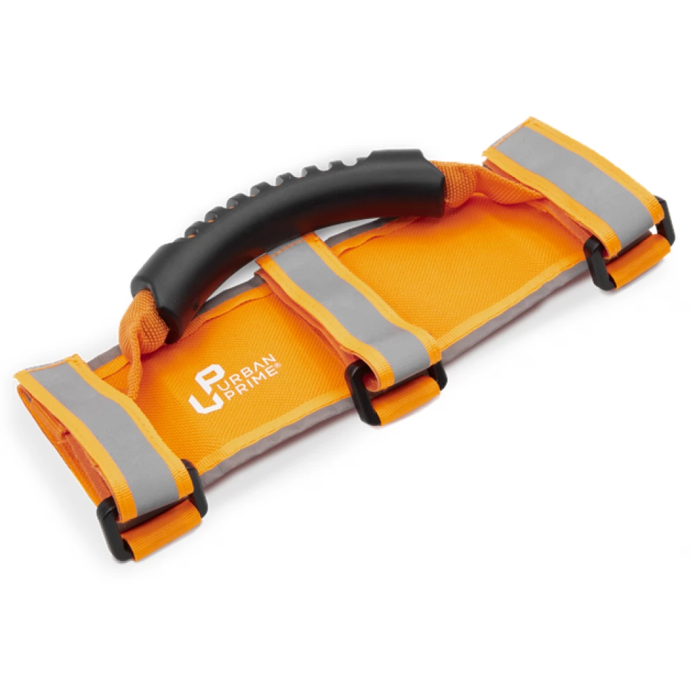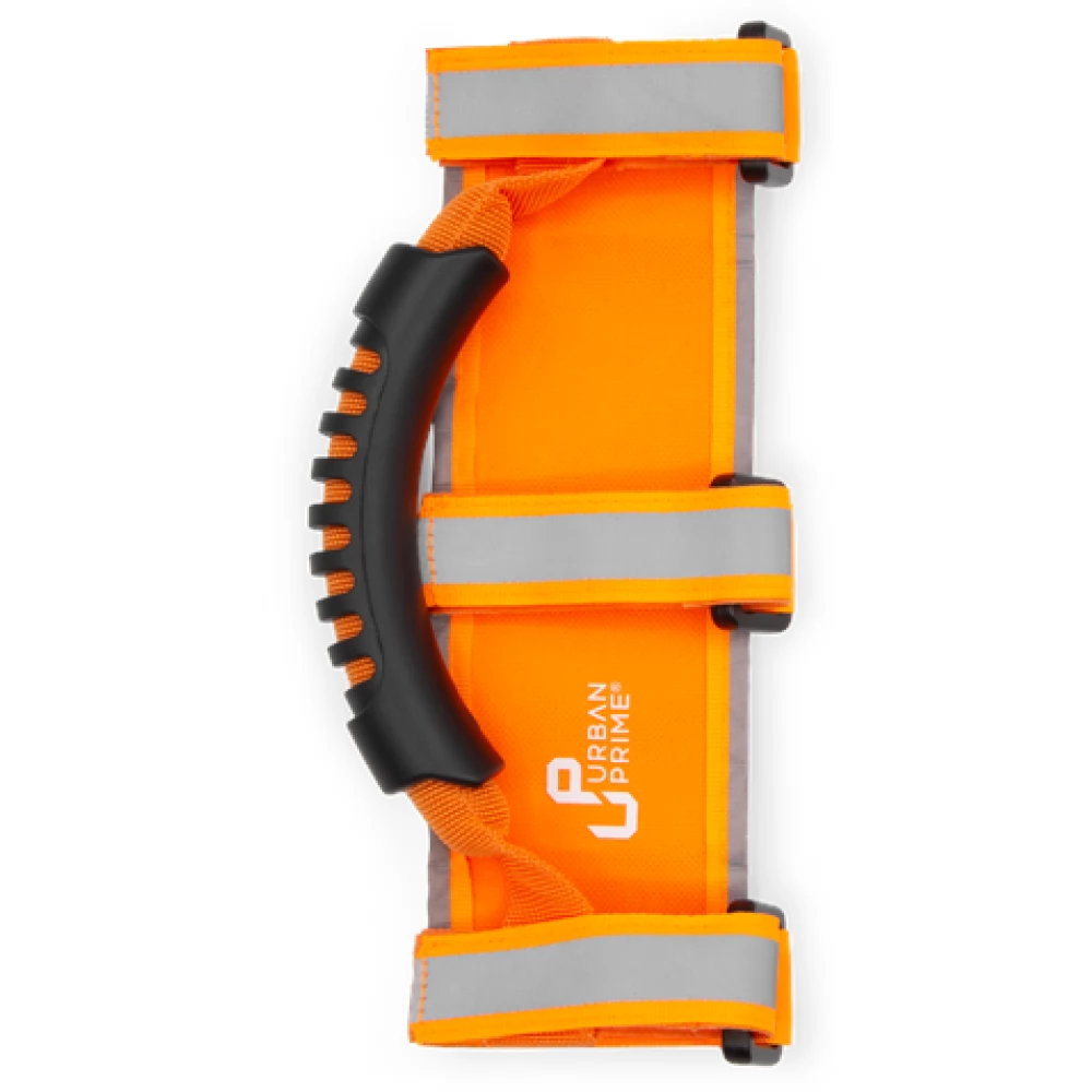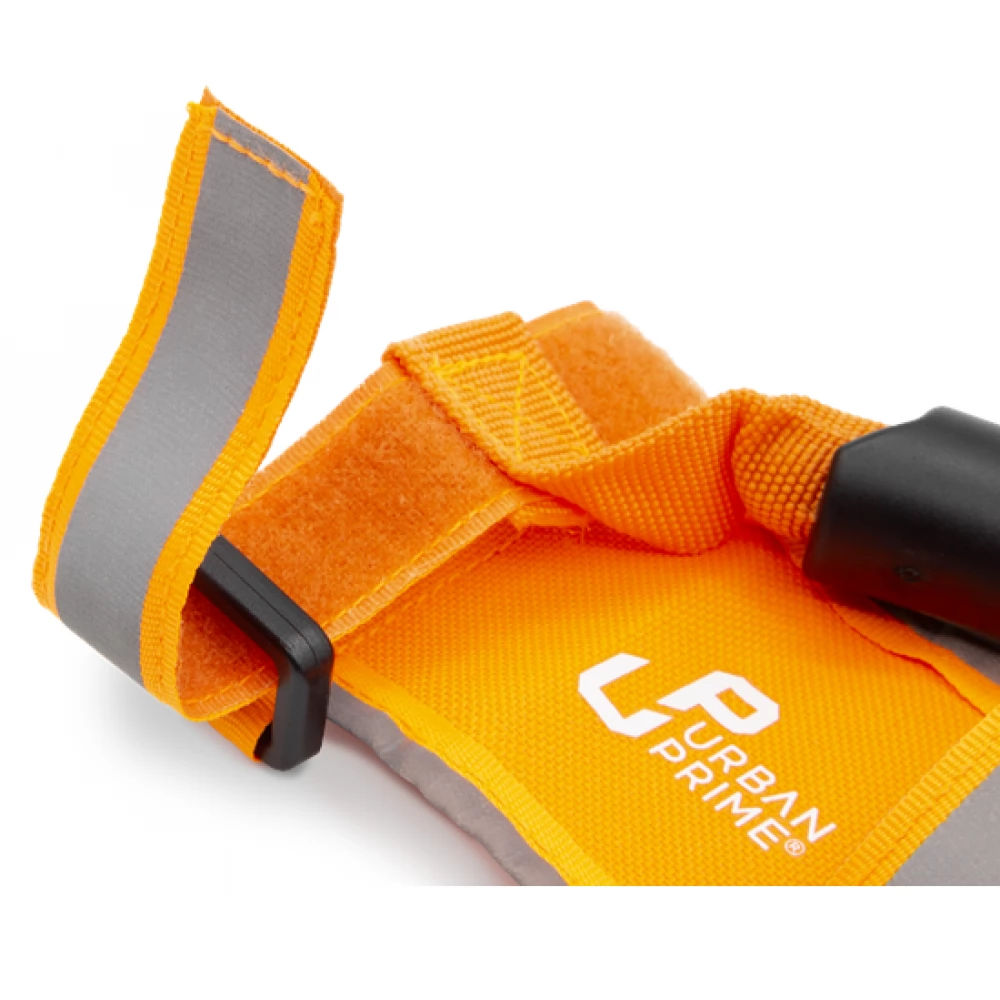 The handle of the Urban Prime is ideal for transporting an electric scooter, up to 50 kg, and can be quickly and easily installed thanks to the three Velcro straps. Side reflective strips provide better visibility even at night. The non-slip coating enables a firm and safe grip on the transported object.