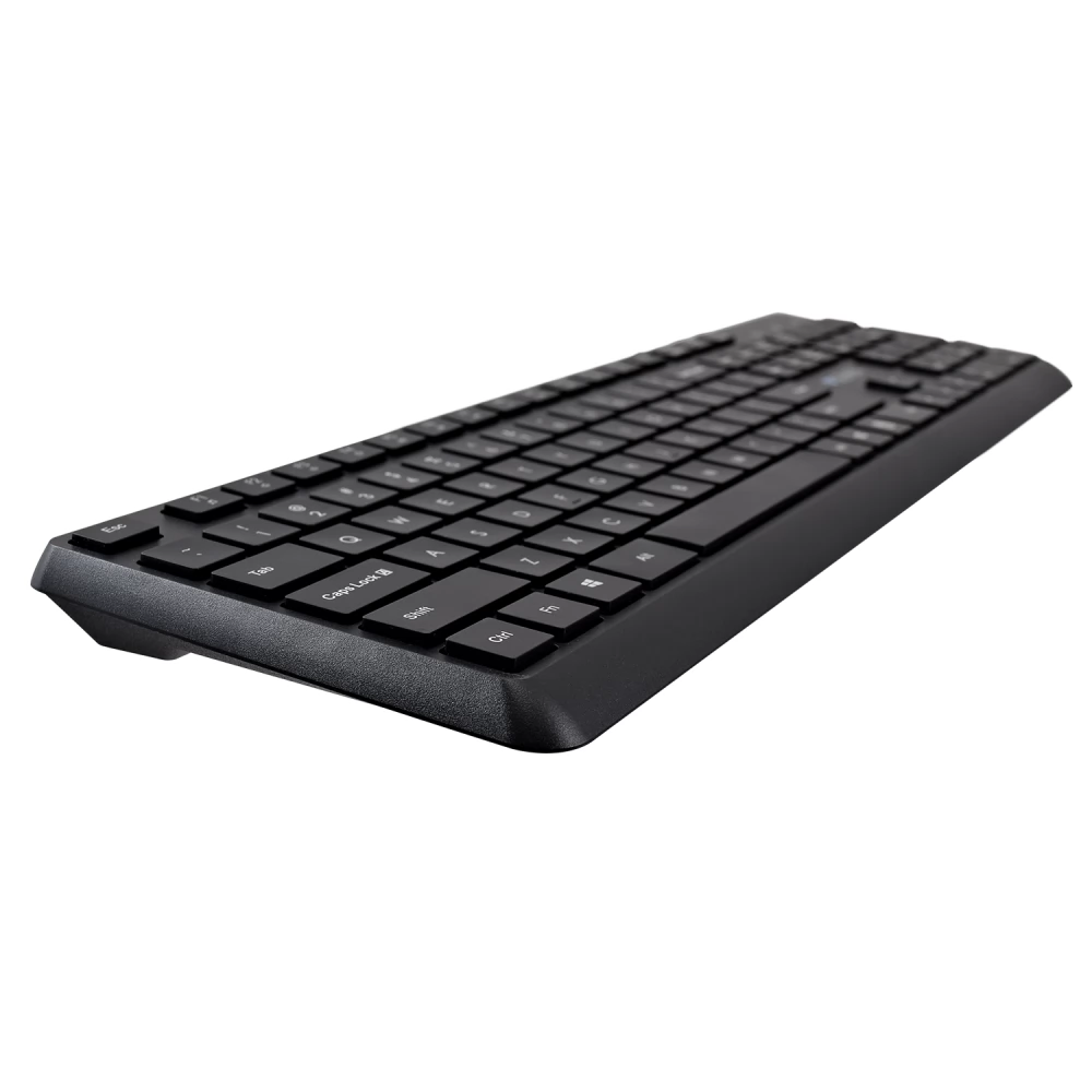 - Flat design with square keys for greater comfort and precision for typing and quiet work