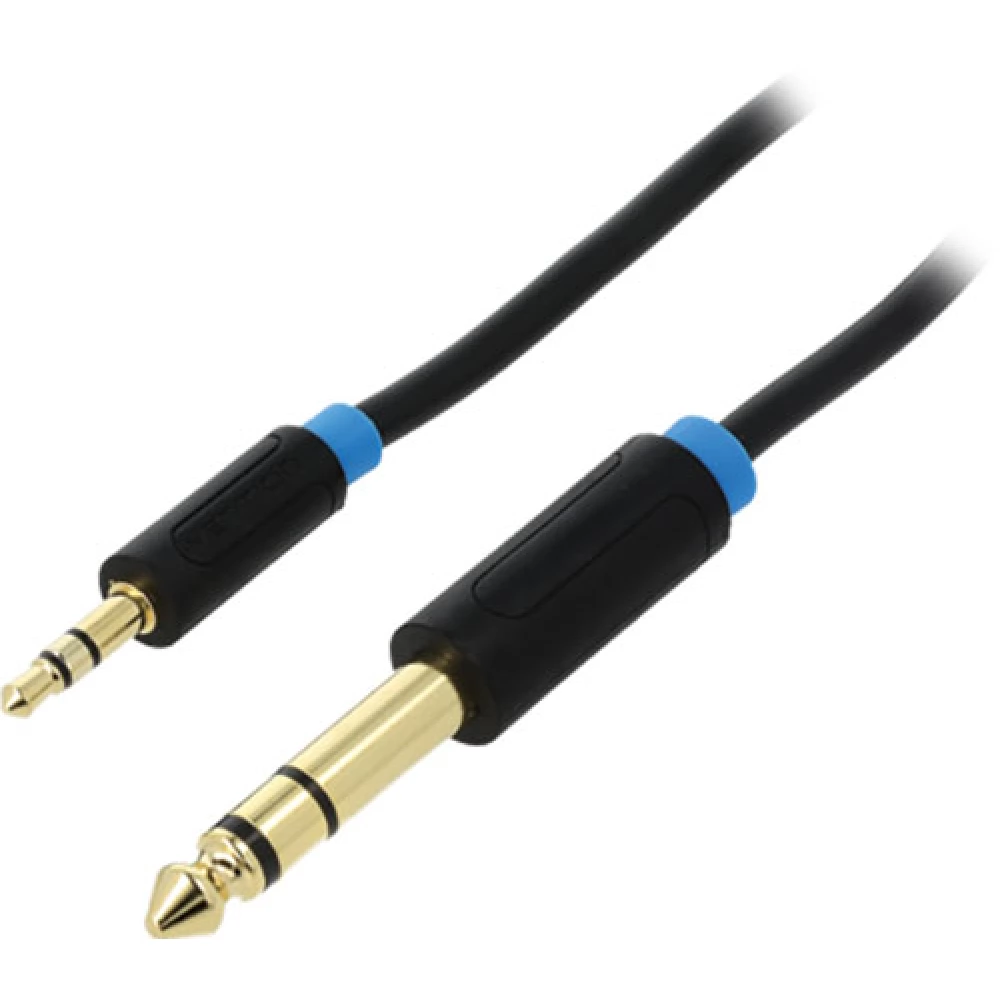 Black, 1m long 3.5 mm Jack - 6.3 mm Jack Conversion cable.