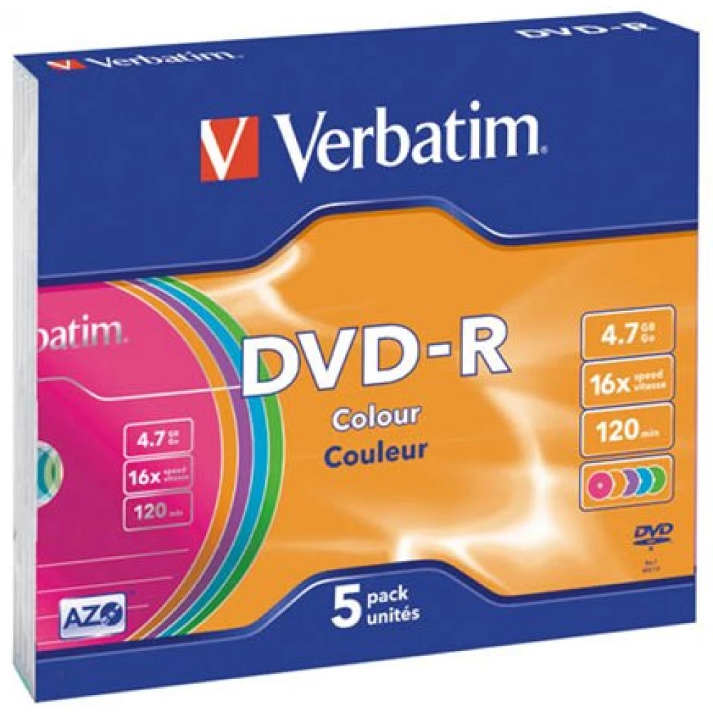 VERBATIM DVD-R 16x 5pcs colored slim case