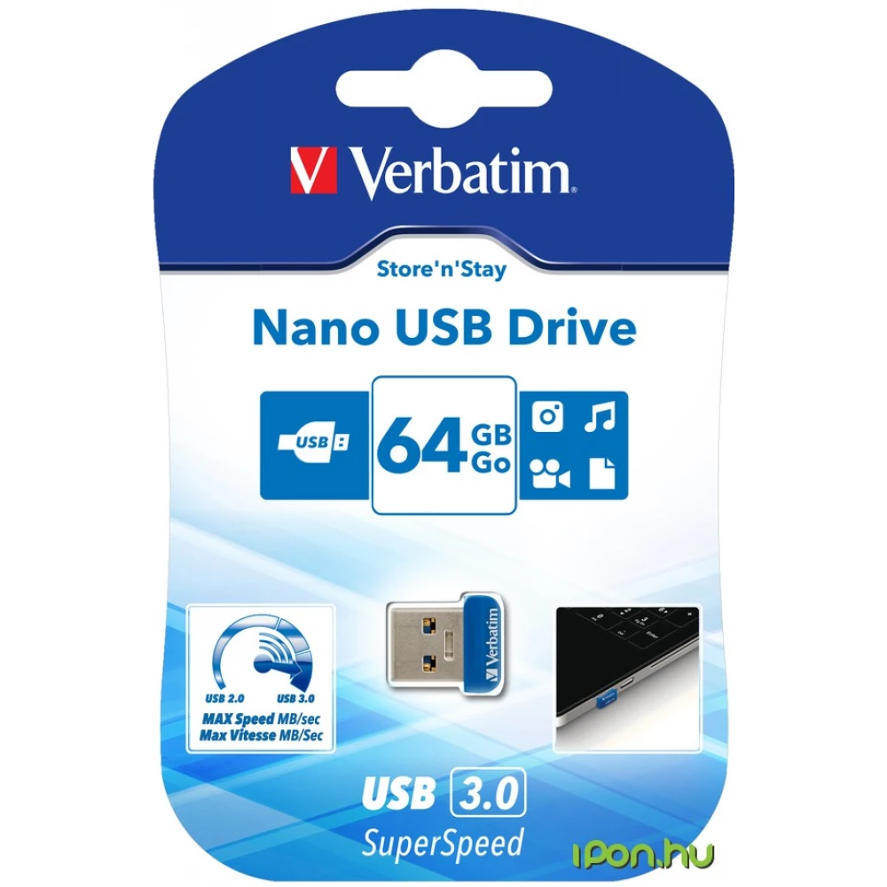 VERBATIM Store n Stay NANO 64GB USB 3.0 Blue