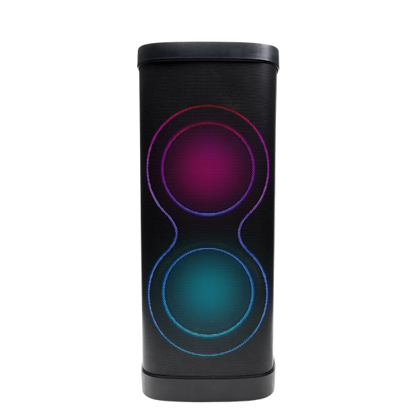 The VIVAX BS-1300 Karaoke speaker has two wireless microphones for the real atmosphere of the karaoke party and an additional input for a wired microphone and an electric guitar. The speaker LED lights can be changed and synchronized with the rhythm of the melody.