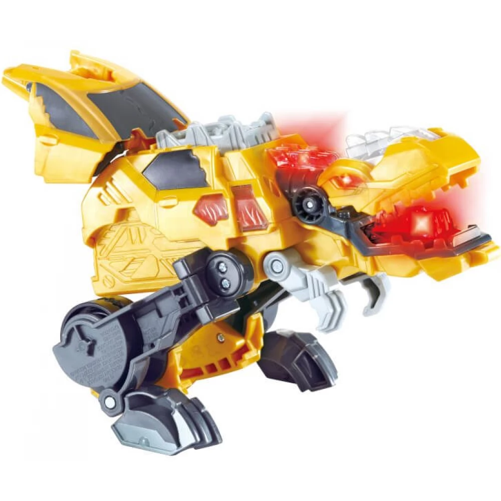 The Switch & Go Battlers dinosaur figures can transform from dinos to vehicles and from vehicles back to dinosaurs in the blink of an eye. Just collide 2 Switch & Go Battlers dinosaur figures in vehicle mode and the vehicle will instantly transform into a dinosaur. At the same time, the robot also produces spectacular sound and light effects.
