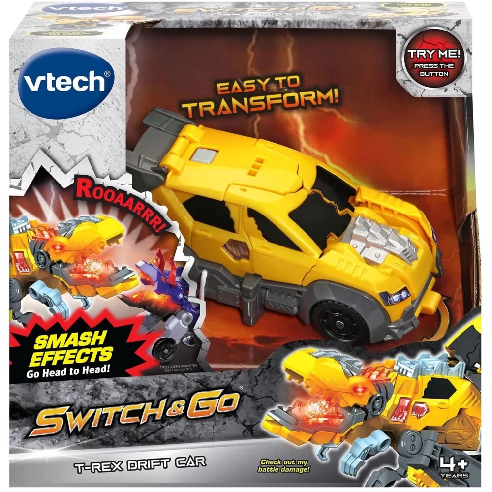 The Switch & Go Battlers dinosaur figures can transform from dinos to vehicles and from vehicles back to dinosaurs in the blink of an eye. Just collide 2 Switch & Go Battlers dinosaur figures in vehicle...