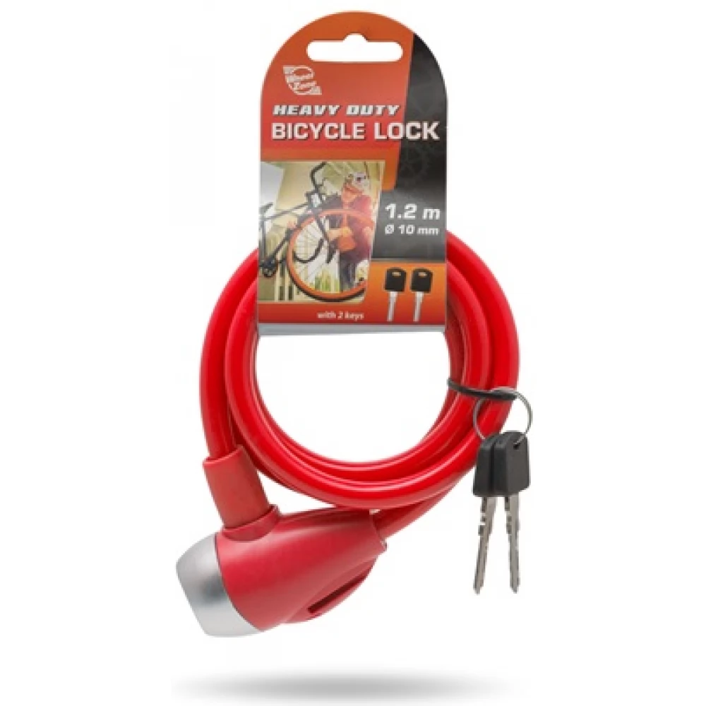 Bicycle cable lock (cable lock). Coated steel cable is more resistant to cutting attacks. Quality locking mechanism, with 2 keys.