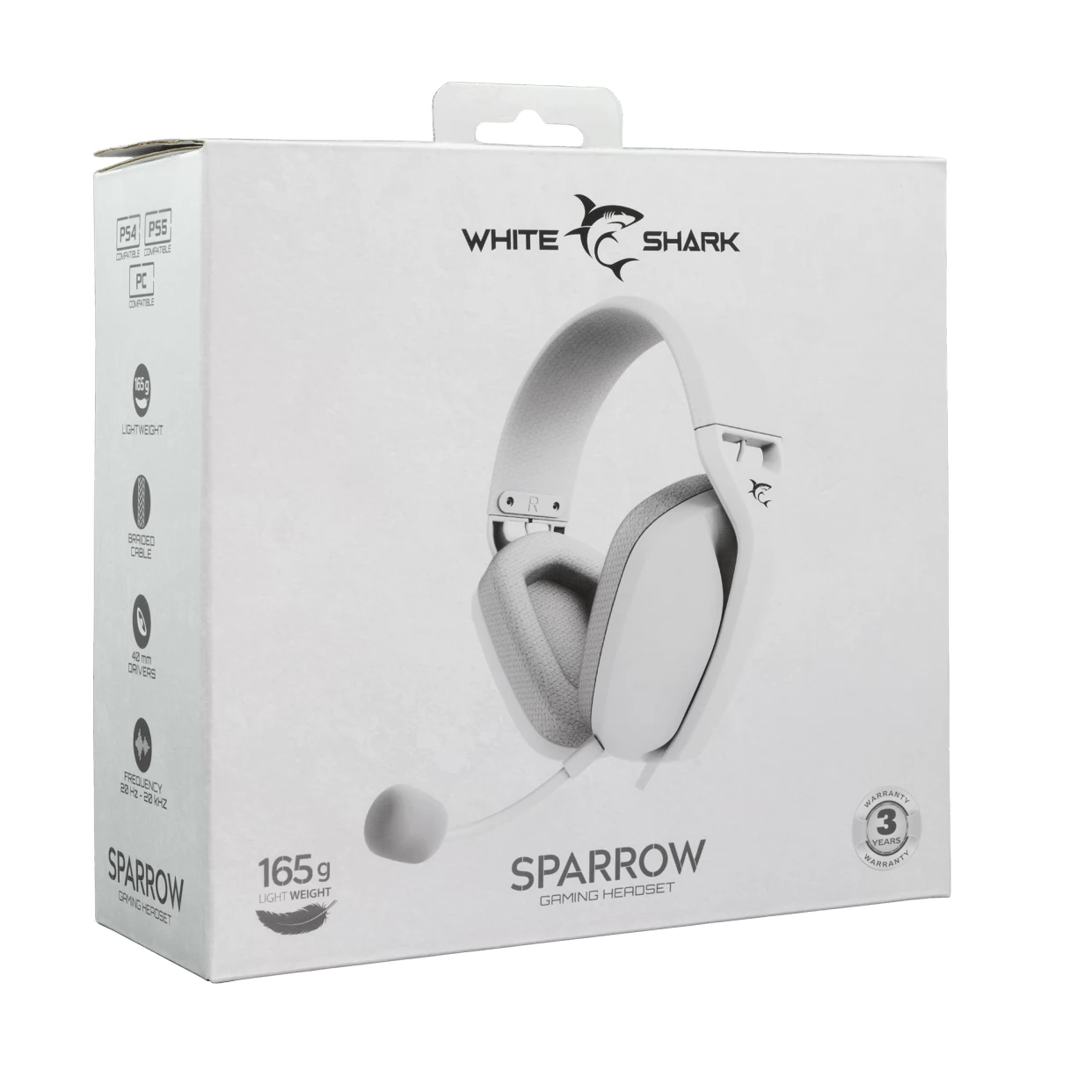 Introducing the White Shark SPARROW Gaming Headset - where light weight and comfort meet an immersive audio adventure. Thanks to its weight of only 165 g, its ergonomic design ensures a feather-light fit. Enjoy crystal clear stereo sound through the 40mm speakers, while you can use the detachable omnidirectional microphone as you wish.