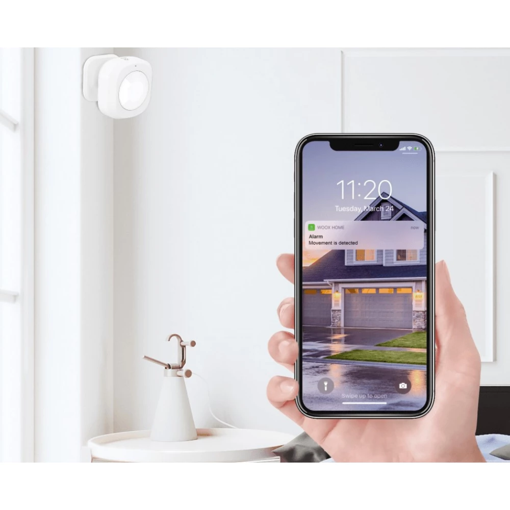 With the help of your smartphone, you can safely access and control your home remotely via the Internet. To use the intelligent PIR motion detector, you need a WOOX Zigbee Hub, the R7070 is not included in the package.
