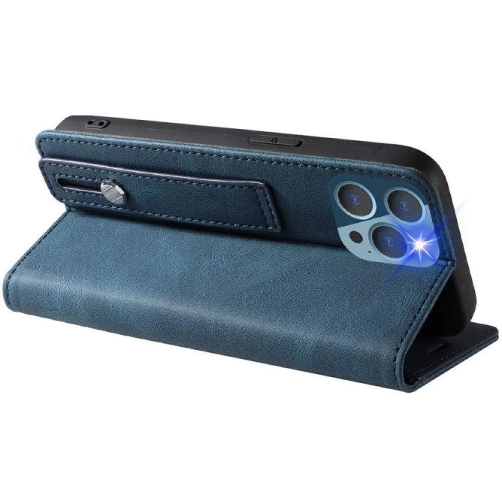 The phone case functions as a convenient wallet equipped with a wrist strap that fully protects your smartphone.