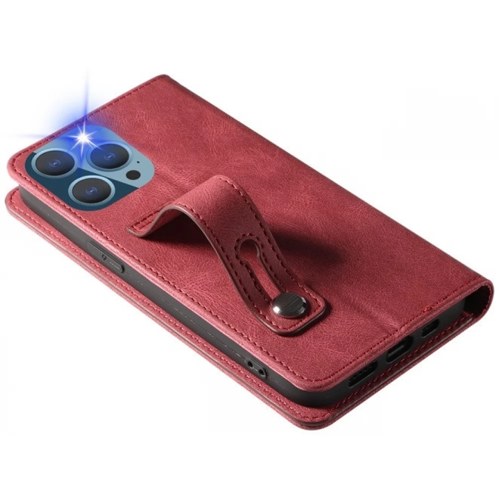The phone case functions as a convenient wallet equipped with a wrist strap that fully protects your smartphone.