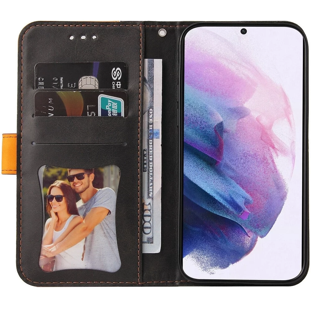 WOOZE Colour Wallet to the side blooming case stand kártyatartóval kézpánttal Samsung to the side blooming case Samsung Galaxy S22 Plus 5G SM-S906 orange