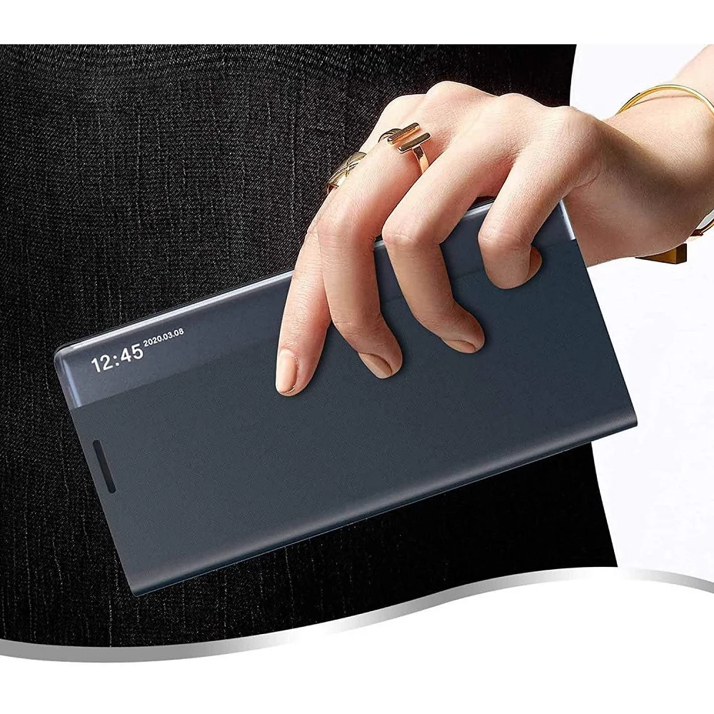WOOZE Look Inside Side blooming case stand call pointer slim csíkban Huawei P20 dark blue