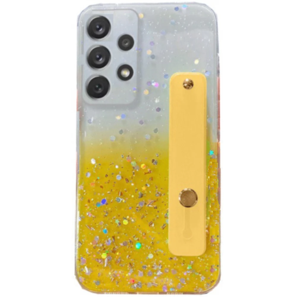 WOOZE Strap Star silicone case kézpánttal Samsung Galaxy S22 Plus 5G SM-S906 mintás/sárga gradient glitter