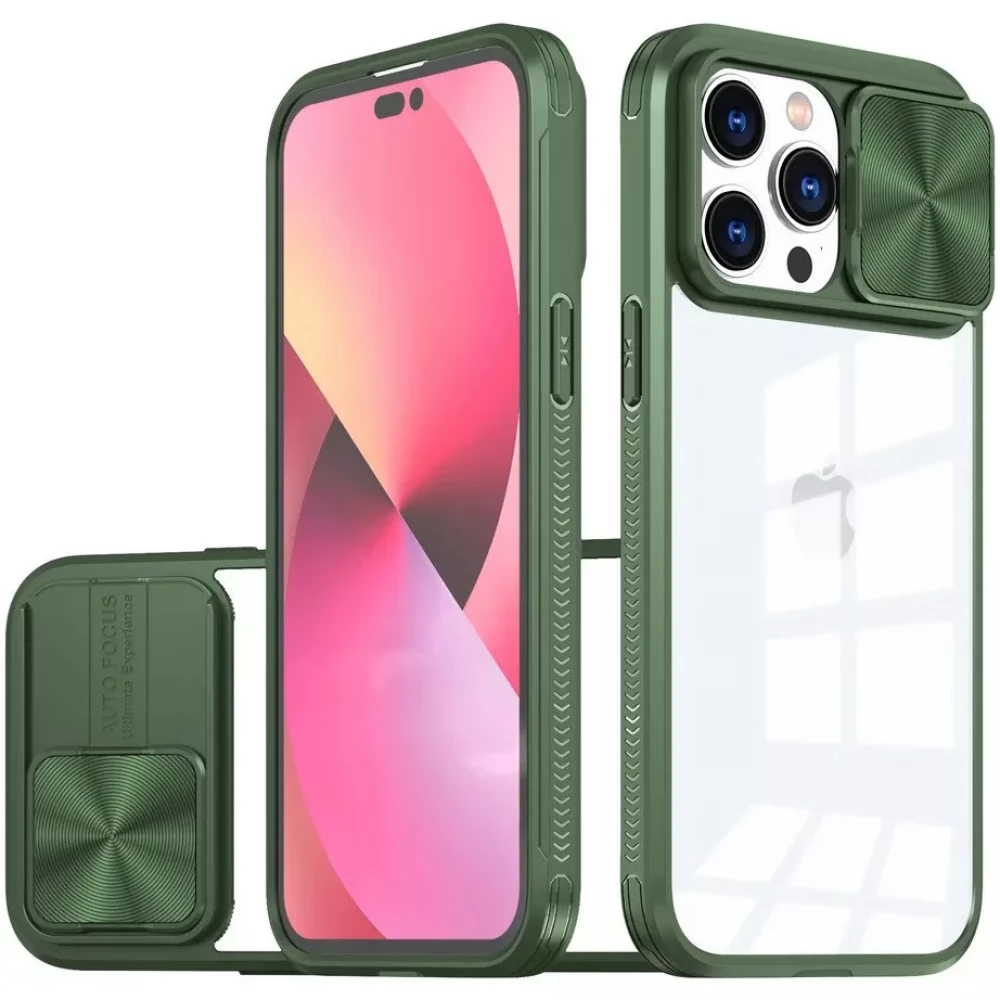 This Wooze case is designed to provide maximum protection and comfort to its user. The device is protected by a flexible TPU and a hard plastic frame and a back made of solid acrylic material. The raised edges protect the phone from scratches. The device's rear camera is protected from external influences by a sliding latch on the back of the case, which can be opened and closed depending on use.