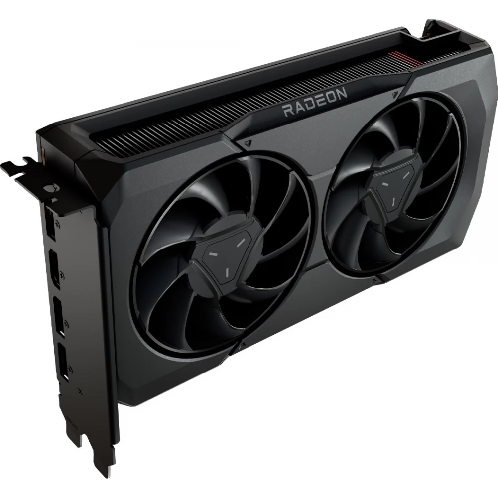 AMD Radeon RX 7600 chips, 8GB GDDR6 memory, 1 HDMI output, 3 displayport outputs.