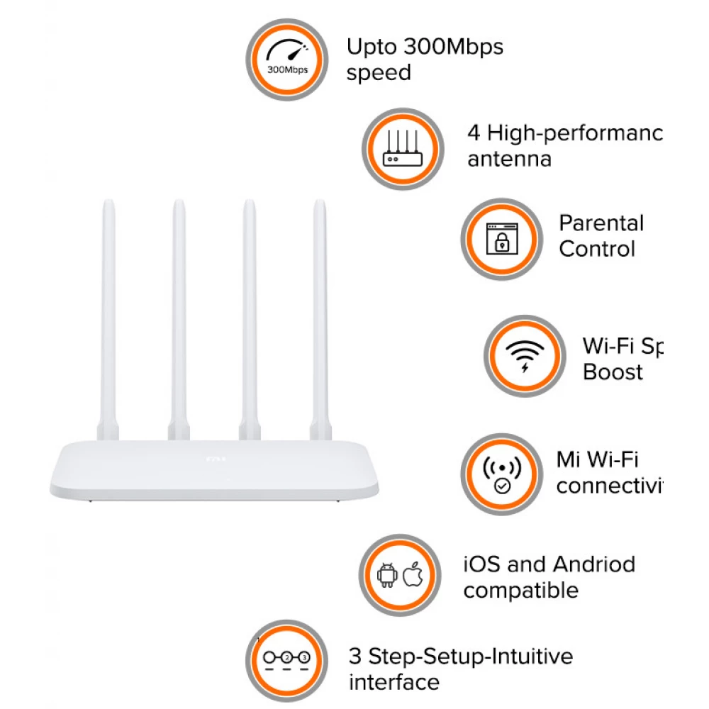 4-antenna Wi-Fi router with a maximum speed of 300 Mbps.