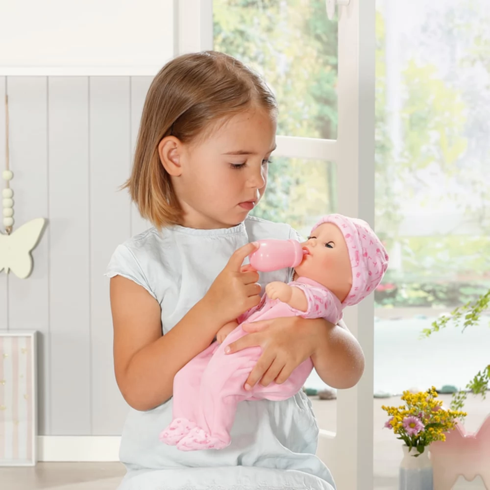 36 cm tall Little Annabell doll with a particularly soft body and head, so smaller children can even sleep with her. At the same time, the little Annabell doll has sleepy eyes, which close when lying down. It is complemented by a baby bottle.