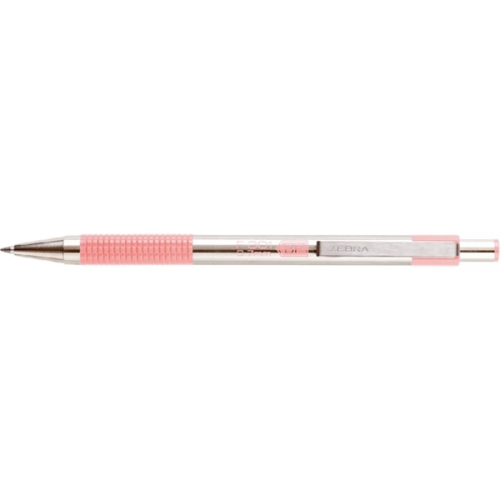 The F-301 Pastel push-button metal ballpoint pen with a pastel pink handle. Replaceable insert (F insert), ball diameter 0.7 mm, writing thickness 0.24 mm.