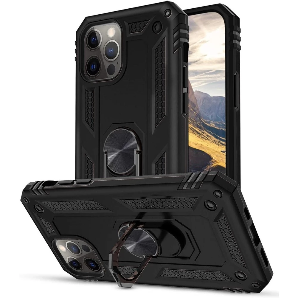 ZONE Defender iPhone 14 Pro Plastic back panel protection case moderately shockproof silicone internal phone case ring black